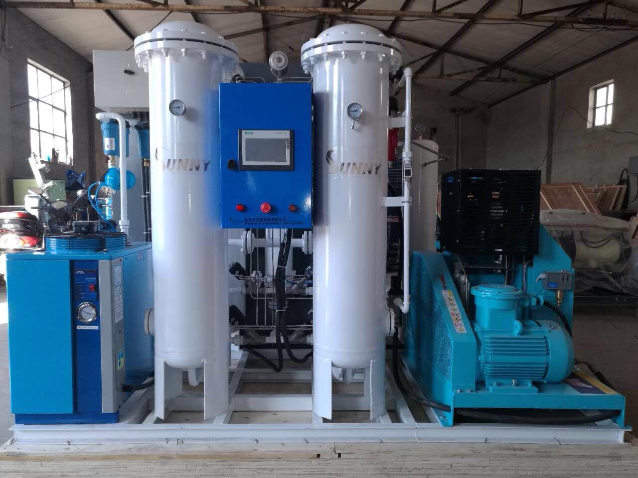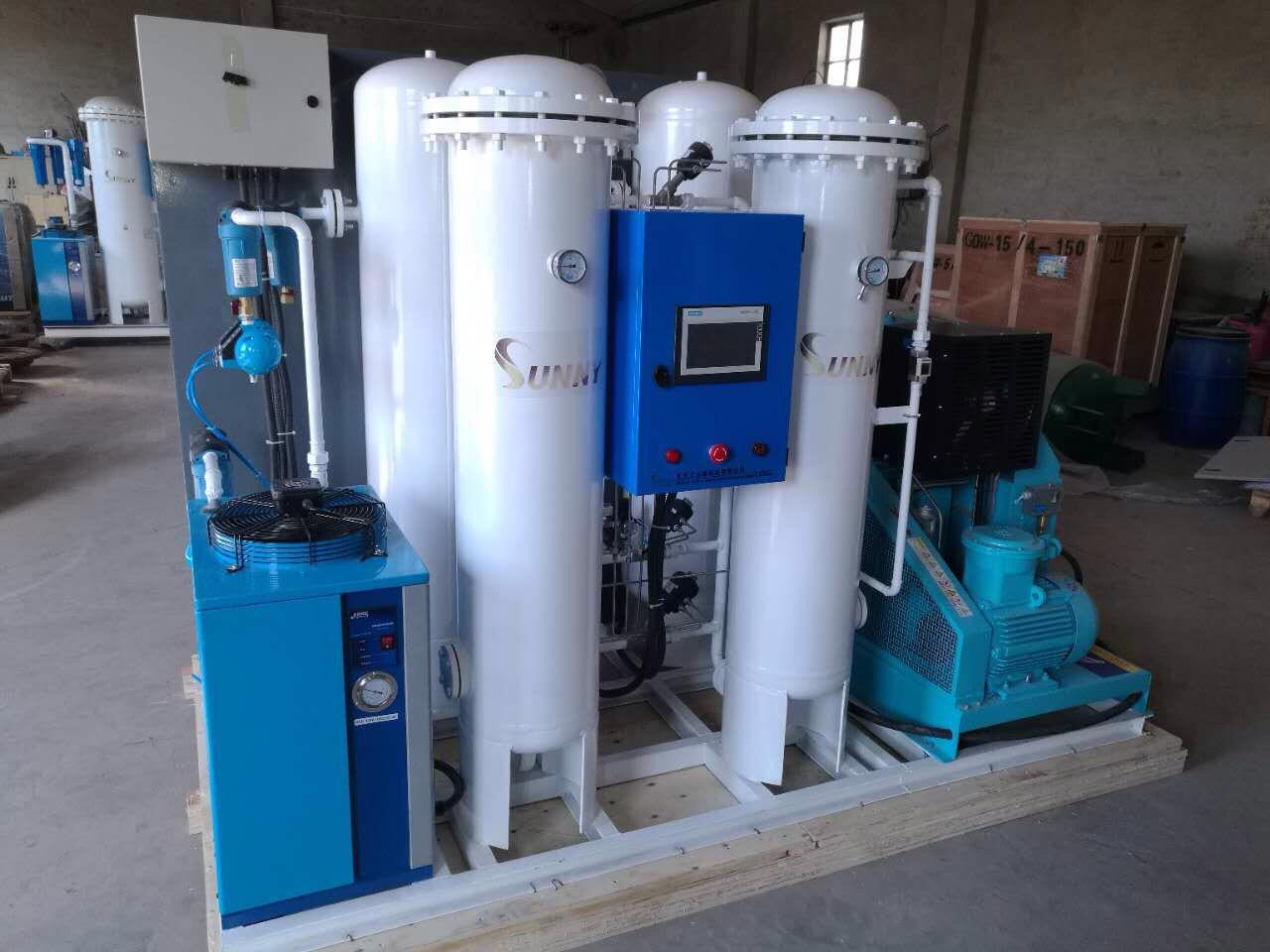 Produksi Oksigen yang dihasilkan dengan kadar kemurnian oksigen hingga 93% dengan penyimpangan ± 2% dan tersedia dengan kapasitas 5 − 30 NM³/h. Mesin produksi SUNNY® ini menghasilkan oksigen dari udara yang telah melewati unit pre filter dengan tujuan untuk menghilangkan kelembaban dan kotoran seperti uap minyak, partikel dan hidrokarbon. Selanjutnya akan dilewatkan melalui saringan molekul Zeolite dengan tujuan menghilangkan molekul nitrogen dan karbondioksida dari udara terkompresi. Kedua saringan bergantian antara filter dan regenerasi dalam upaya menjamin aliran oksigen yang berkelanjutan. Kemurnian oksigen yang dihasilkan mencapai angka 93% ± 2% digunakan untuk berbagai kebutuhan, salah satunya adalah untuk kebutuhan medis. Mesin pembangkit oksigen medis ini biasanya diletakkan di rumah sakit untuk memenuhi ketersediaan oksigen.