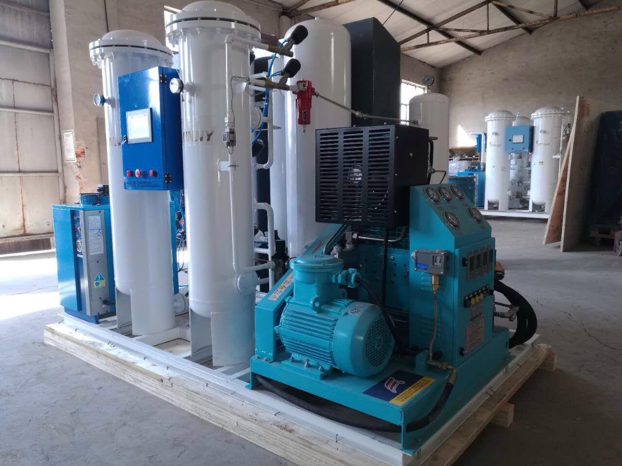 Mesin untuk memproduksi Oksigen Medis ini menggunakan tekhnologi Pressure Swing Adsorption (PSA) yang menghasilkan kemurnian oksigen hingga 93% dengan penyimpangan ± 2% dan tersedia dengan kapasitas 5 − 30 NM³/h. Mesin ini menghasilkan oksigen dari udara yang telah melewati unit pre filter dengan tujuan untuk menghilangkan kelembaban dan kotoran seperti uap minyak, partikel dan hidrokarbon. Selanjutnya udara tadi akan dilewatkan melalui saringan molekul Zeolite dengan tujuan menghilangkan molekul nitrogen dan karbondioksida dari udara yang telah terkompresi tersebut. Kedua saringan akan secara bergantian antara filter dan regenerasi dalam upaya menjamin aliran oksigen yang berkesinambungan. Kemurnian oksigen yang dihasilkan mencapai angka 93% dengan penyimpangan ± 2% dapat digunakan untuk berbagai kebutuhan, salah satunya adalah untuk kebutuhan medis.